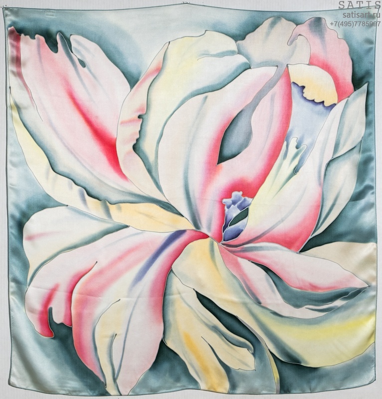 Платок шейный из натурального шелка ЦВЕТУЩАЯ МАГНОЛИЯ